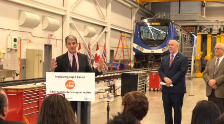 Kevin Desmond (at podium) made the announcement at a Feb. 23 press conference. Photo – TransLink's 'Buzzer' blog TransLink late last week announced plans to accelerate the delivery of 28 new SkyTrain cars for the Expo and Millennium lines.To be built by Bombardier, the units now are slated to arrive by the end of 2019,…
